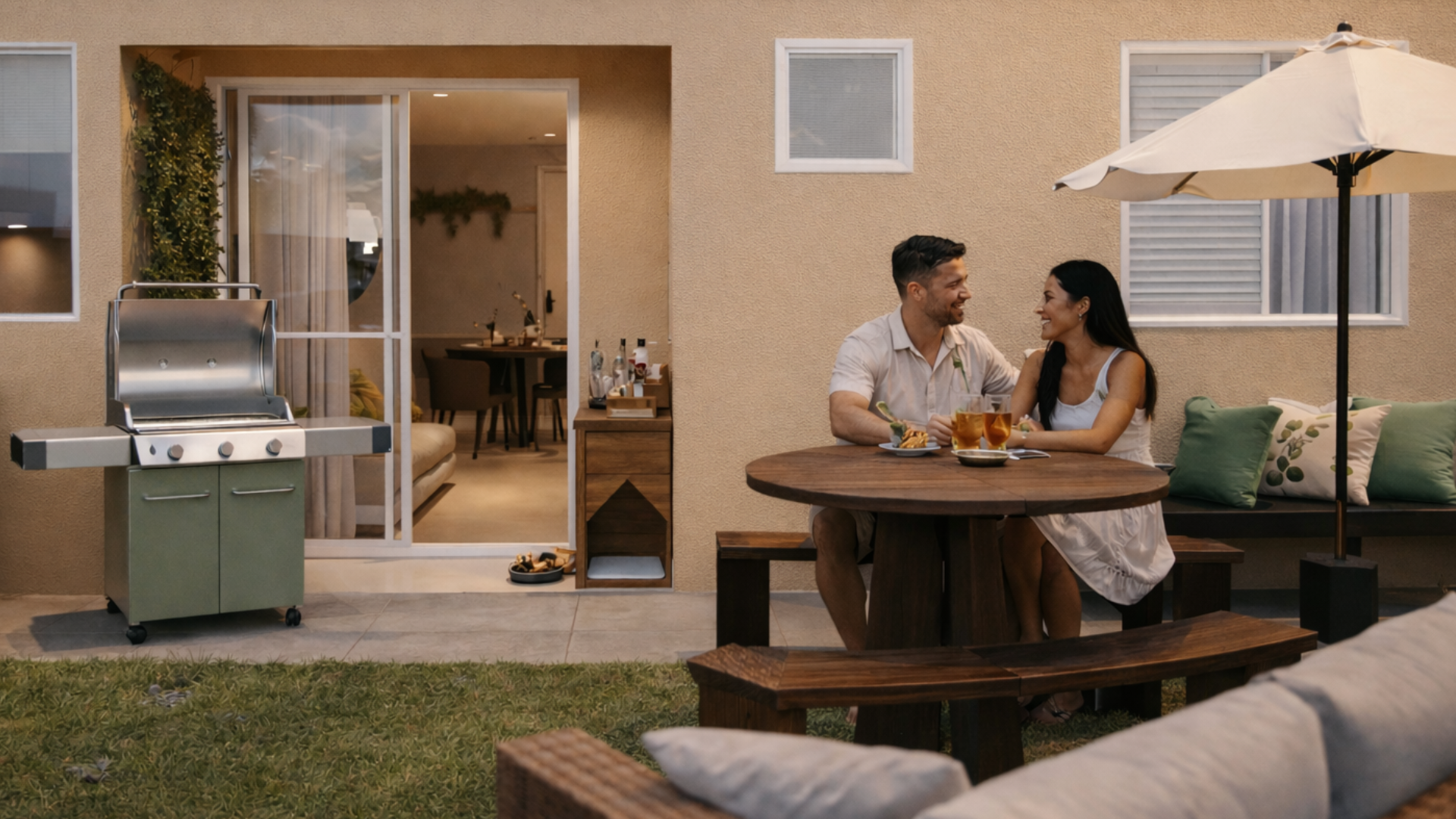 Pode ser um espaço com churrasqueira, um cantinho para o seu pet, uma área para receber amigos, um mini jardim ou até aquele lugar perfeito para relaxar no fim do dia.