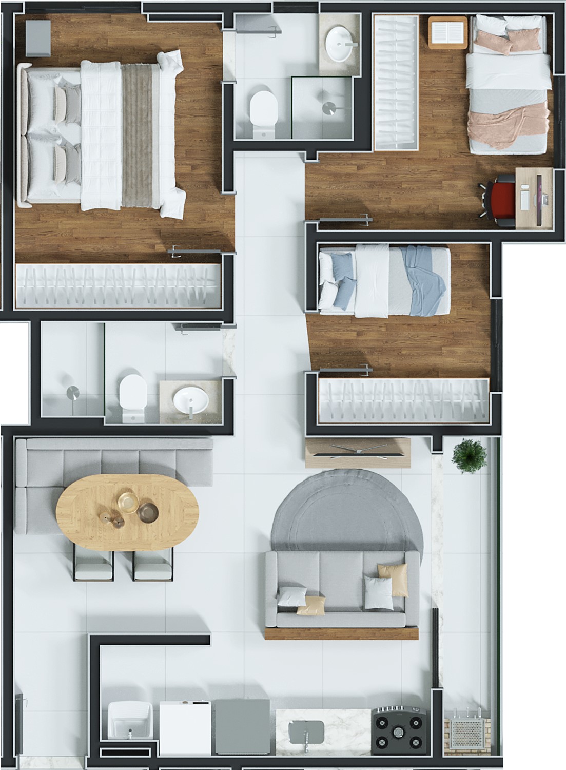 Tenha no quintal do seu apartamento o majestoso Shopping Passeio das Águas, para uma vida mais dinâmica e fluida.