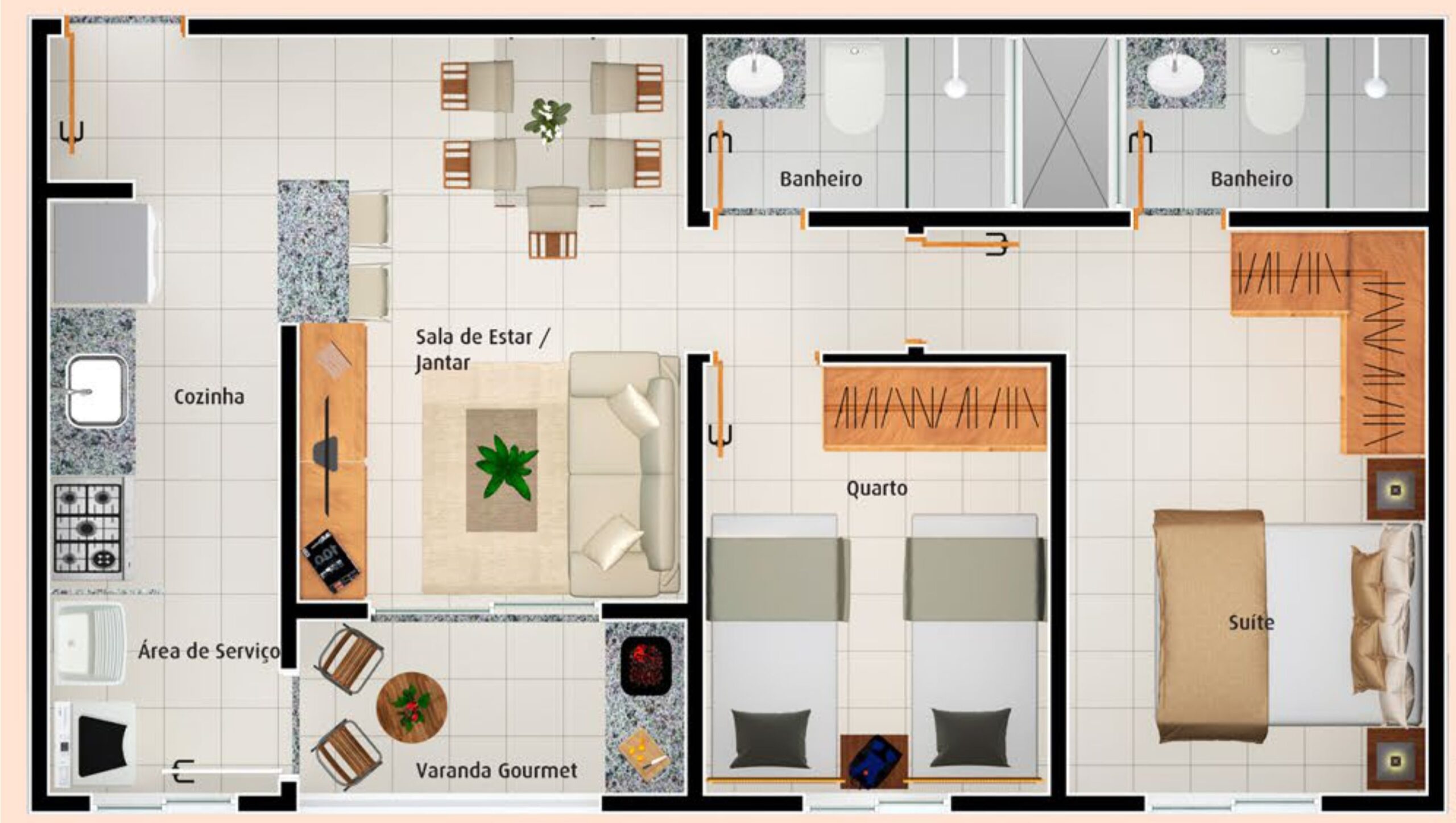 O Reserva Buriti conta com apartamentos de 54 m² e 59 m².